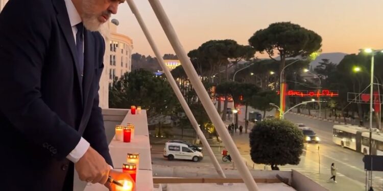 Kryeministri Edi Rama, ashtu siç është vepruar në të gjithë vendin, ka ndezur qirinj në ballkonin e kryeministrisë.