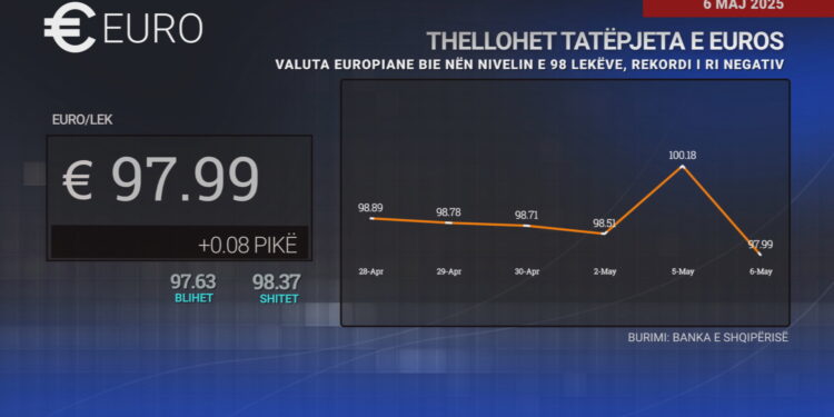 Euro bie nën 98 lekë, për herë të parë që nga tetori i vitit 2008 kur valuta europiane hyri në Shqipëri.
