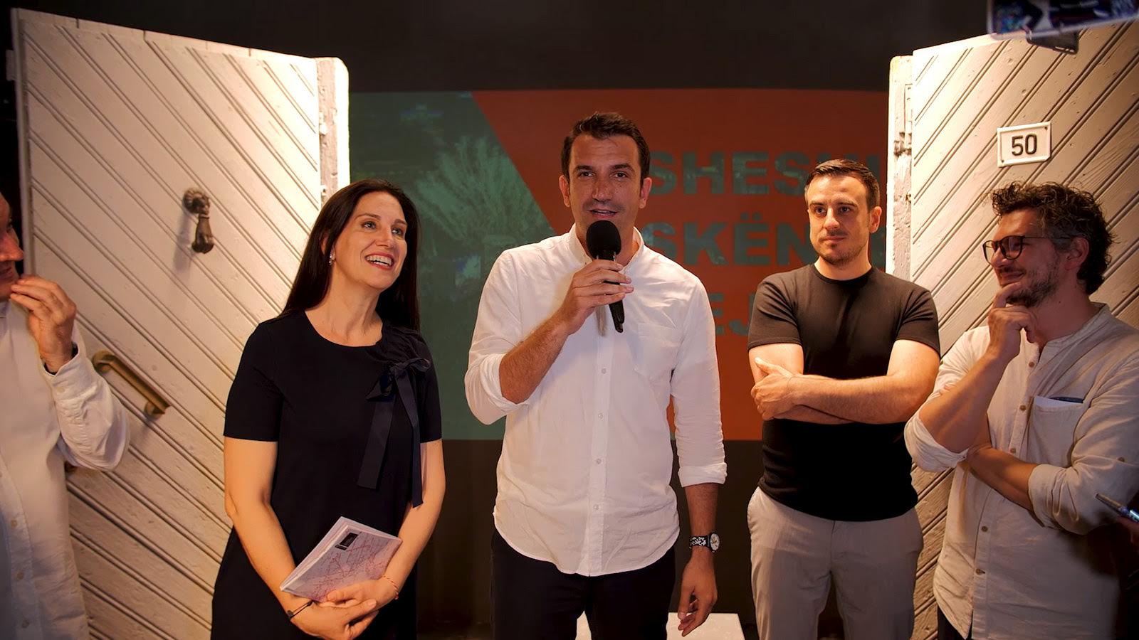 Kryetari i Bashkisë së Tiranës, Erion Veliaj dhe Ministrja e Kulturës, Mirela Kumbaro, të shoqëruar nga Ambasadorja e Shqipërisë në Itali, Anila Bitri, prezantuan projektin “Hapësira zero”, i cili përfaqëson vendin tonë në Bienalen e Venecias, e ku paraqitet një pjesë e mjedisit urban, historisë dhe traditës së Tiranës, përmes portave të vjetra të marra nga banesat e kryeqytetit, si element për të shpjeguar hapësirën ku bashkëjetojnë e vjetra dhe modernia.