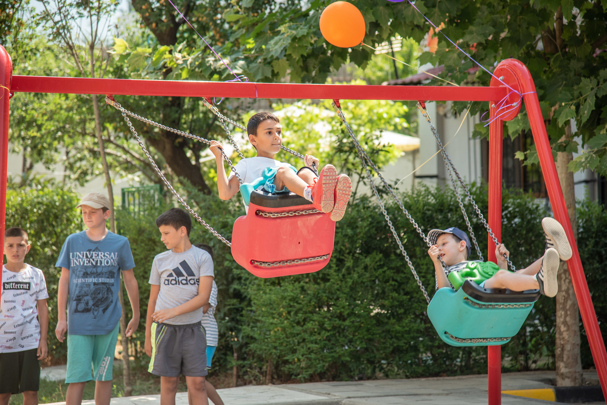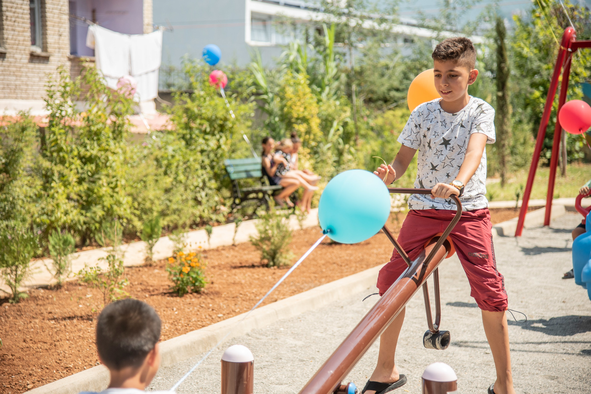 Këndi i lojërave për fëmijë në zonën e Ali Demit shërben edhe si një shesh pushimi për të moshuarit dhe banorët e këtij komuniteti.