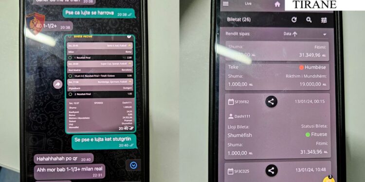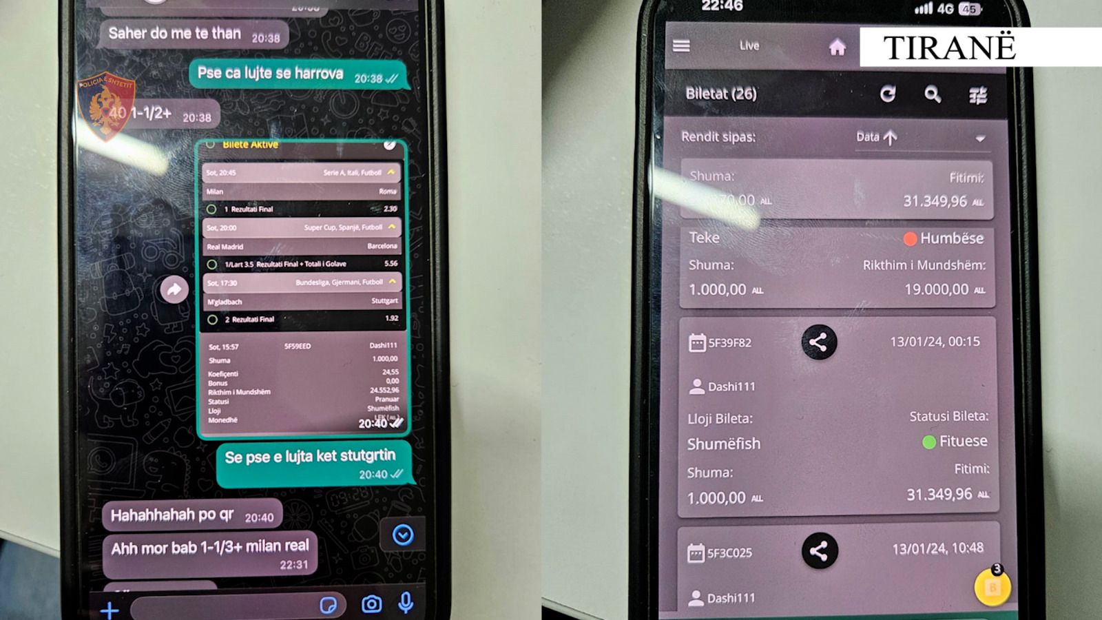 Gjatë kontrolleve të ushtruara në disa subjekte të vëna në dispozicion për organizimin e lojërave të fatit, u konstatuan këta shtetas, në celularët e të cilëve shërbimet e Policisë gjetën faqe dhe linqe që shërbenin për vënien e basteve sportive.