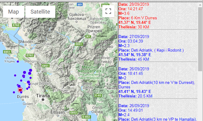 Ndërkohë, lëkundje të lehta tërmeti, 2.3 ballë, janë ndjerë edhe ditën e djeshme. Sipas Institutit të Gjeoshkencave lëkundjet ishin me epiqendër po në detin Adriatik, me thellësi 45 kilometër.