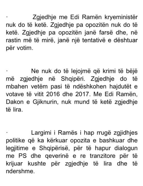 Dhe kesaj rradhe e ben,pasi ka dorezuar e djegur mandatet e opozites, pasi i ka dhuruar gjithe bashkite kundershtarit, pasi ka nxjerr PD nga cdo perfaqesim,e pasi e ka debuar nga sistemi.