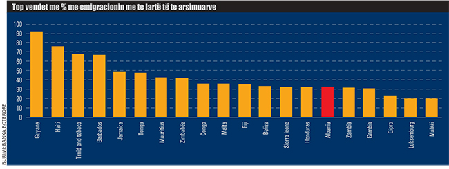 Një studim i profesorëve Ilir Gëdeshi dhe Russell King, për llogari të Programit të Zhvillimit të Kombeve të Bashkuara (PNUD) i publikuar së fundmi, tregoi se Shqipëria renditet në mesin e 15 vendeve për emigracion të lartë të personave të arsimuar dhe me grada shkencore.