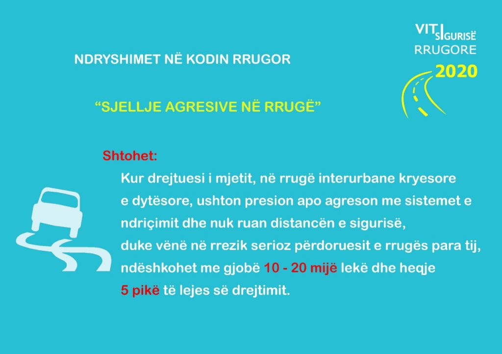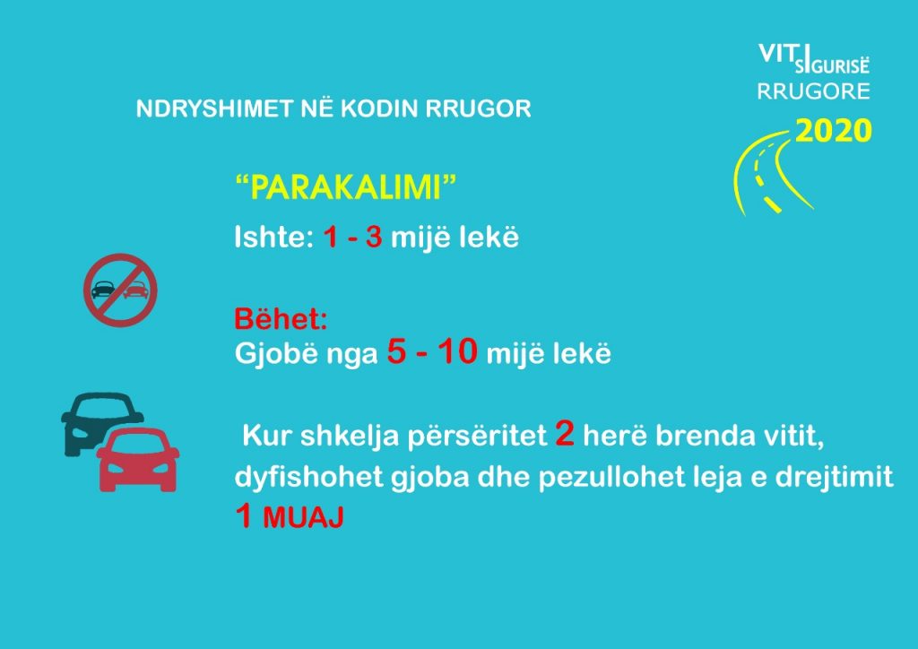 Sakaq, të gjithë shoferët e automjeteve të cilët do të konstatohen se drejtojnë makinën nën efektin e alkolit, përveçse do të arrestohen nga policia siç ndodh aktualisht, me ndryshimet në Kodin Penal është bërë një shtesë. Nëse shoferi konstatohet me pije alkoolike nga ora 19:00 – 06:00 të mëngjesit, propozohet që gjoba të jetë 30% më e lartë. /e.s/