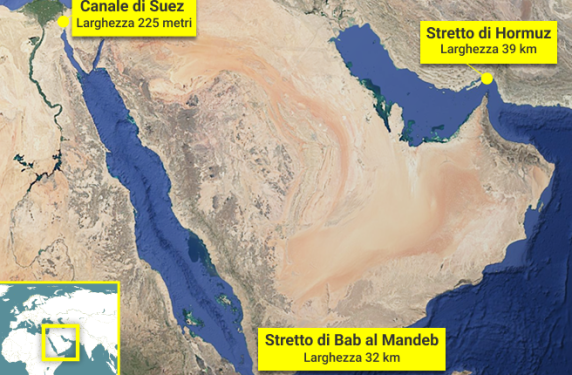Pika më kritike aktualisht është ngushtica e Hormuzit, e cila ndan gadishullin arabik nga bregdetet e Iranit dhe lidh Gjirin e Omanit (juglindje) me Gjirin Persik (perëndim). Ajo ka gjerësi 39 km dhe gjatësi 60 km, ndërsa thellësia maksimale e detit është 220 metra, duke e bërë sipërfaqen e lundrueshme më të kufizuar.