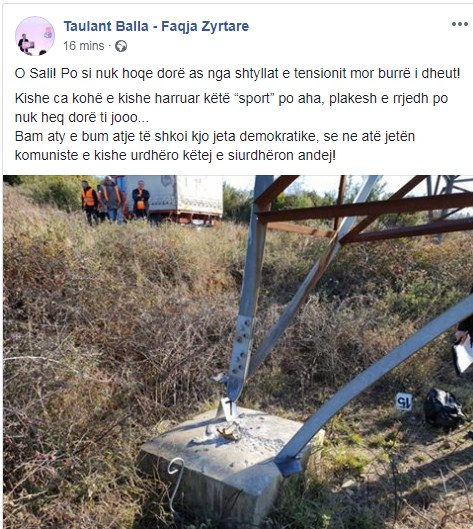 Në një postim në rrjetet sociale, Balla akuzon për këtë sulm, të cilësuar nga Kodi Penal si terrorist, ish-kryeministrin Sali Berisha.