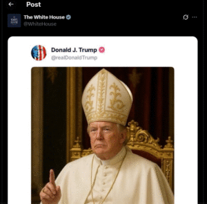 Fotomontazhi u postua në llogaritë zyrtare të Shtëpisë së Bardhë vetëm pak ditë para nisjes së Konklavit të ri, i cili pritet të fillojë më 7 maj.