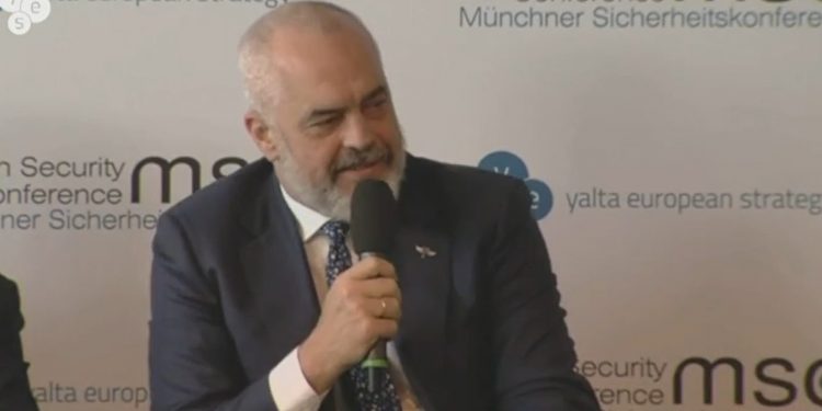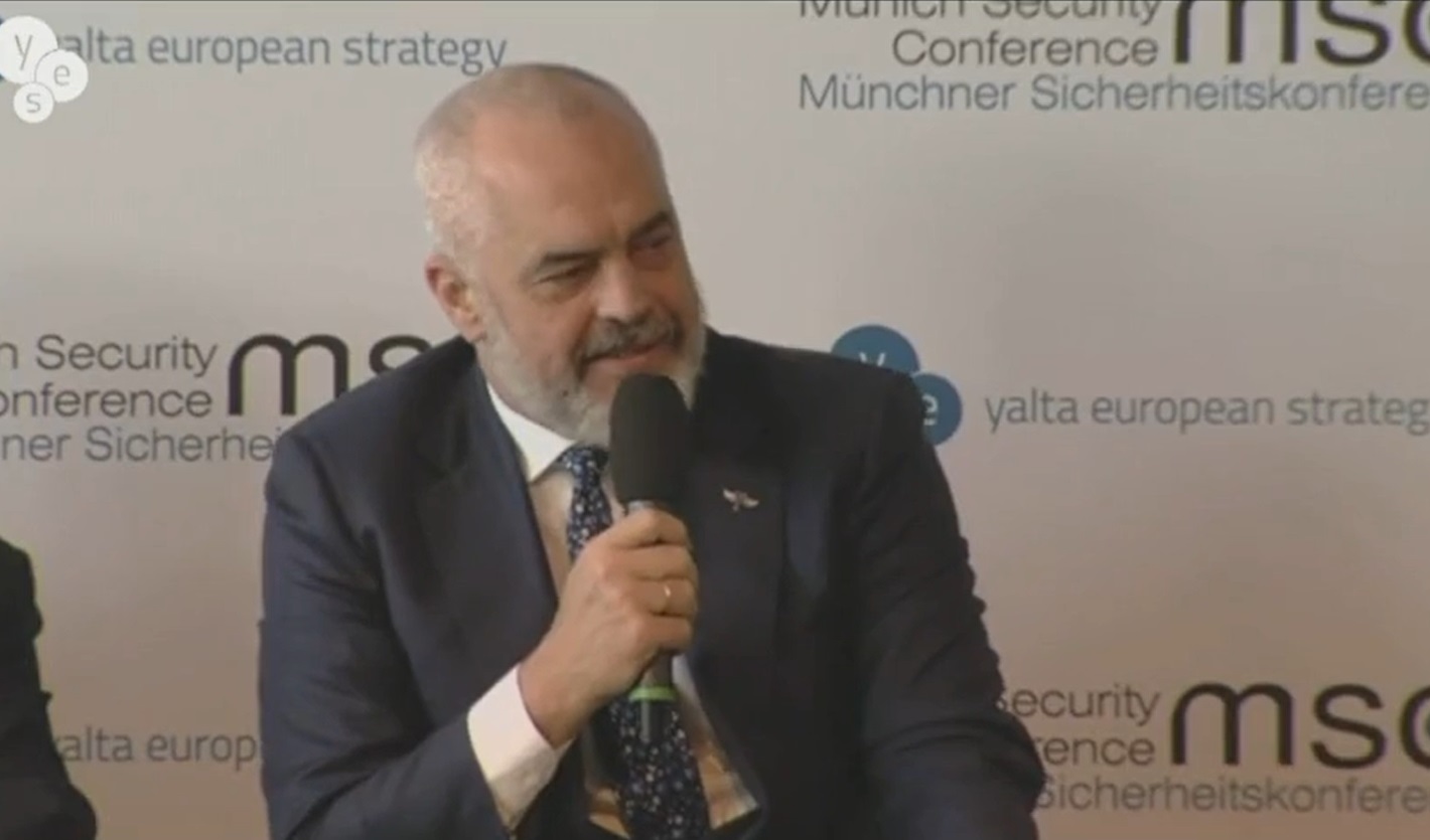 Kryeministri i Shqipërisë, Edi Rama, flet si kryesues i OSBE për konfliktin mes Rusisë dhe Ukrainës, në Komisionin e Sigurisë, në Mynih të Gjermanisë.