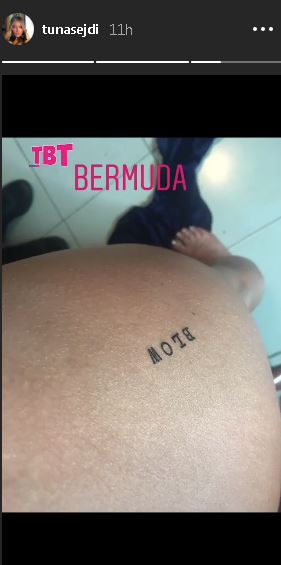 Para disa orësh, Tuna ka publikuar në profilin e saj në Instastory, një foto të të pasmeve, mbi të cilat shfaqet e shkruar në lëkurë fjala “Blow” në anglisht, që në shqip do të thotë “Fryj”.