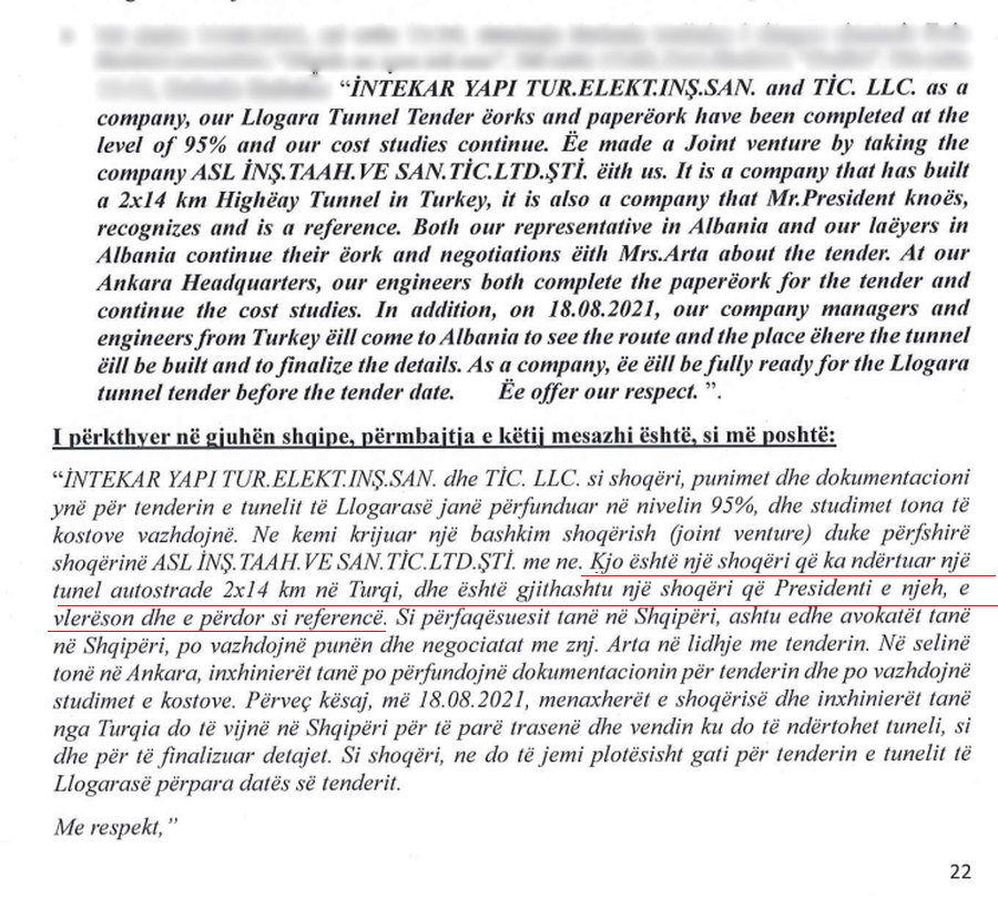 Tuneli u ndërtua nga kompania turke A S L İNŞAAT, e cila drejtohet nga biznesmeni Abdulkadir Kart, një emër i njohur në Turqi dhe ndër më të afërtit me presidentin Rexhep Tajip Erdogan. Sipas dosjes hetimore, vetë Kart është përmendur si një investitor i rekomanduar personalisht nga Erdogan në vendet mike të Turqisë – dhe Shqipëria, pa dyshim, është një prej tyre. Në këtë kontekst, nuk është e çuditshme nëse nga pala turke ka pasur nxitje që projekti të përfundohej në afat, madje me insistim diplomatik. Mund të ketë pasur “nxitim” në procedura, por kjo nuk përbën korrupsion. Është pjesë e marrëdhënieve të ngushta mes dy qeverive, e ngjashme me mënyrën se si veprojnë shumë shtete kur kanë kompani të veta në tregjet partnere. Në fund të ditës, ajo që del nga dosja e SPAK deri më tani është një tablo e përpjekjeve për t’u përballur me ngërçet e administratës dhe për të përfunduar një vepër të madhe infrastrukturore. Nuk ka asnjë element që të tregojë pasurim të paligjshëm, favorizim apo ndikim përfitues në tender.
