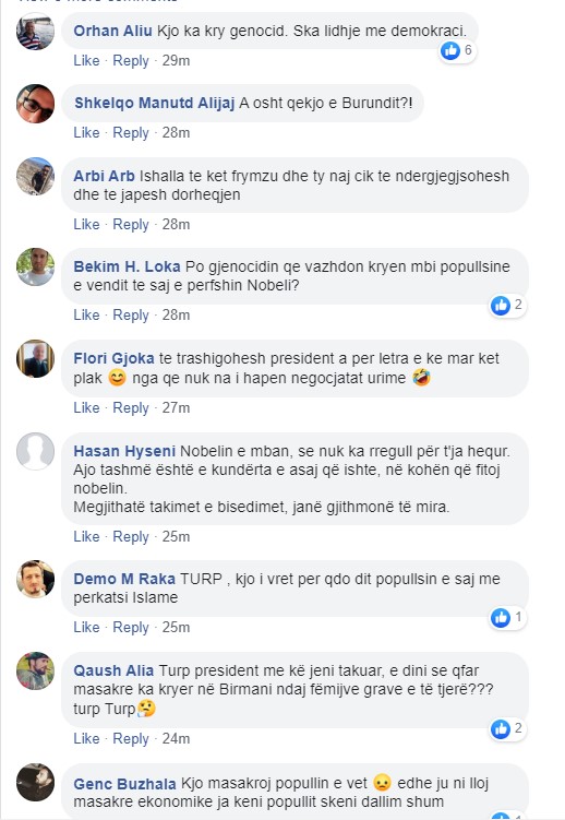 Kujtojmë që kohë më parë, janë hapur shumë peticione online, të cilët janë nënshkruar nga miliona njerëz, ku kanë bërë thirrje për revokimin e Nobelit të Paqes për Suu Kyi, shkaktare e persekutimit, masakrës dhe gjenocidit mbi komunitetin pakicë të myslimanëve rohingianë.