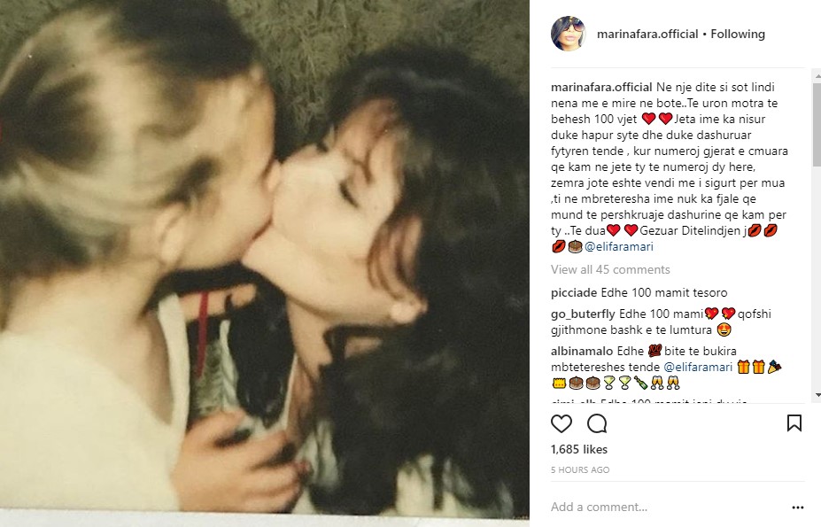 Përmes një postimi në rrjete sociale vajza e saj Marina ika dedikuar një urim mjaft prekës nënës së saj duke i shprehur të gjithë dashurinë: