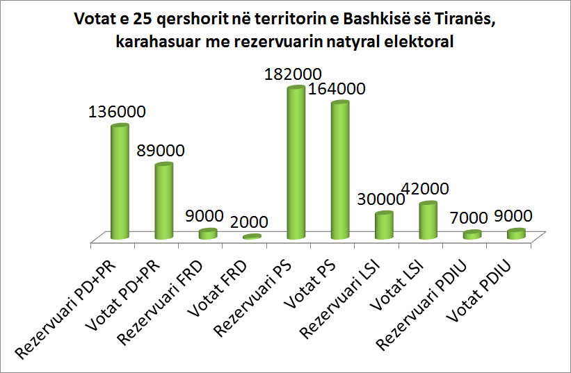 Është e vështirë të analizohen statistikisht këto “akuza” në të gjitha zonat e vendit, por vlen të analizohet se sa arriti secila parti kryesore të thithë vota nga rezervuari i saj natyral në territorin e Bashkisë së Tiranës (jo të qarkut të Tiranës).