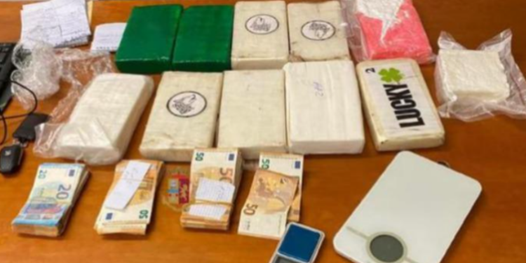 Tjetri, gjithashtu i arrestuar, po fshihte afërsisht 70,000 euro në para të gatshme në pjesën e poshtme të rreme të makinës së tij dhe në çantën e shpinës. Gjatë kontrolleve u gjetën më shumë drogë dhe para të gatshme.