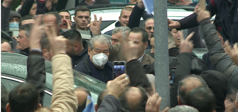 Ish-kryeministri Sali Berisha i është bashkuar mbështetësve të tij duke shkuar në këmbë në seli e PD ku edhe ndodhën incidentet gjatë orëve të para të protestës.