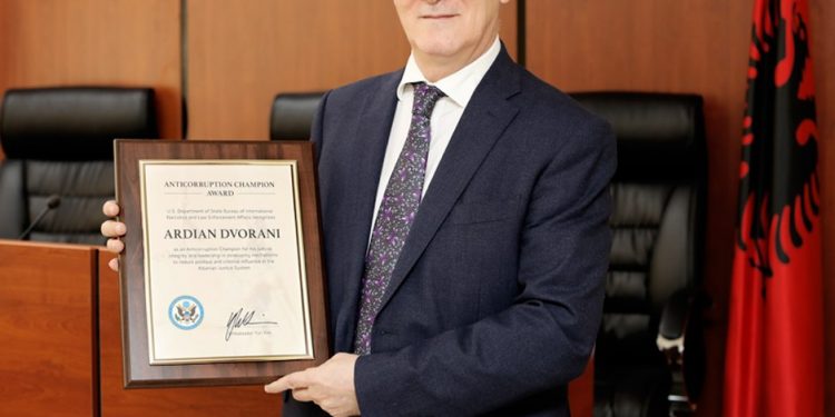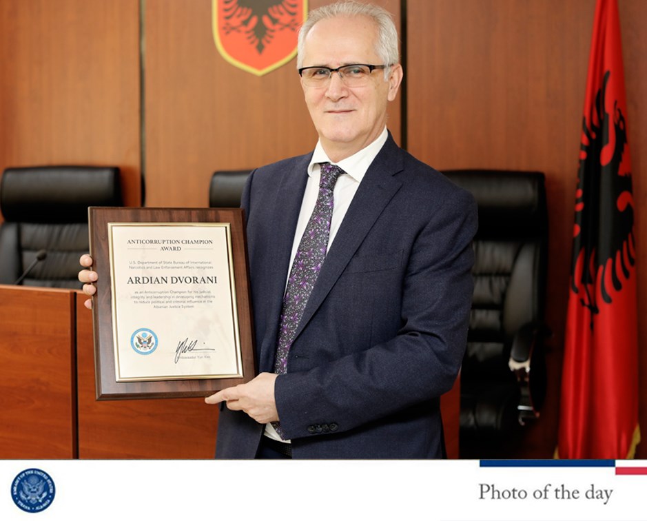 Gjyqtari Ardian Dvorani ka marrë zyrtarisht çmimin Kampion Kundër Korrupsionit të akorduar nga Departamenti Amerikan i Shtetit.