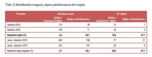 Një pjesën e parë të 2019-ës, numri i aksidenteve rrugore rezulton të ketë qënë më i vogël. Referuar publikimit më të fundit të Instat mbi aksidentet rrugore, në periudhën janar – qershor 2019, numri i aksidenteve rrugore ka qenë 10.9 % më i ulët se në të njëjtën periudhë të vitit paraardhës.