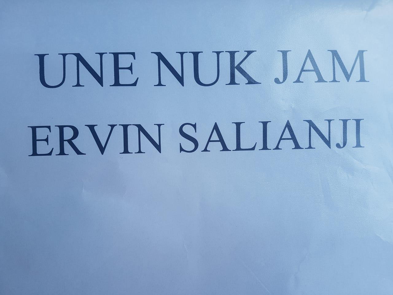 Deputeti Salianji mbante në dorë një letër ku shkruante me ironi “Unë nuk jam Salianji”.