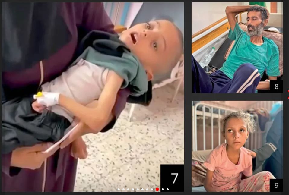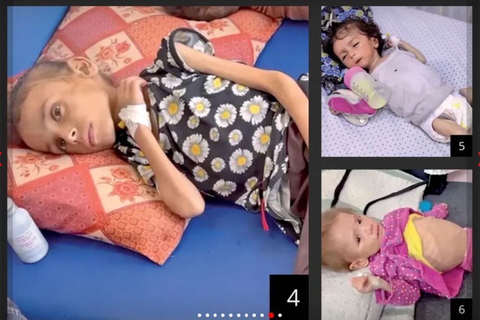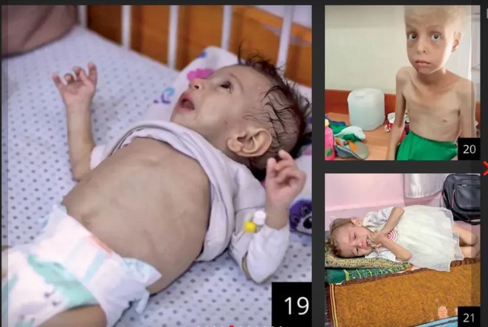 Në Spitalin Nasser në Khan Younis, Dr. Ahmed al-Farra tregon fëmijë të dobësuar në mënyrë ekstreme, me kockat që u duken, lëkurë të verdhë dhe flokë që u kanë rënë. Sipas këtij artikulli të “Haaretz” që mban këtë titull “Uria është kudo: Turnetë virtuale të klinikave në Gaza ekspozojnë shkallën e tmerrit”, 10-vjeçarja Bayan peshon vetëm 17 kg, aq sa peshon një fëmijë 4-vjeçar normal. Dy muaj më parë peshonte 24 kilogramë, thotë nëna e saj.