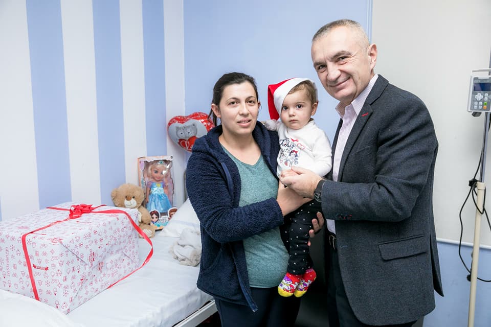 “Përmes kësaj foto me Amelian, vogëlushen nga Fieri që do e presë Vitin e Ri këtu në QSUT, ju uroj të gjithë fëmijëve me probleme të shëndetit: “Gëzuar Vitin e ri 2018”!