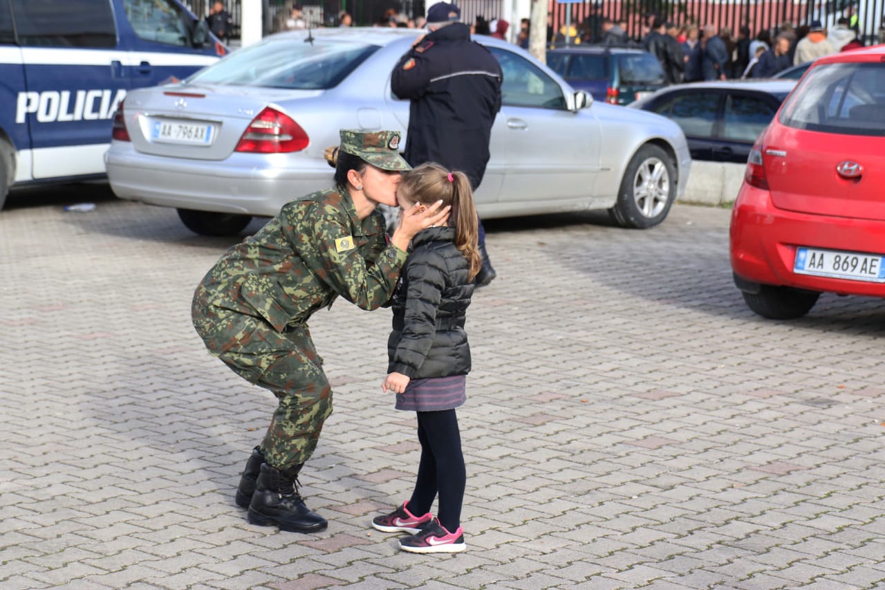 Në takimin me trupat e dislokuar në stadiumin “Niko Dovana”, ministrja Xhaçka shoqërohej nga shefi i Shtabit të Përgjithshëm të Forcave të Armatosura, gjeneral brigade Bardhyl Kollçaku dhe komandanti i Komandës Mbështetëse, gjeneral brigade Ndriçim Sallaku.