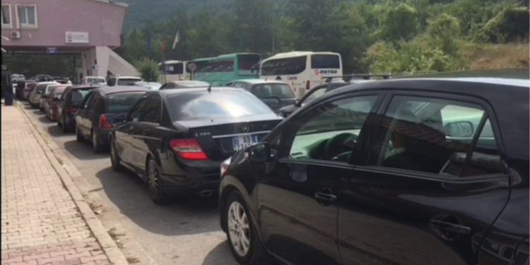 Vargu i automjeteve shkon mbi një kilometer dhe qyetarët janë të detyruar të presin me orë të tëra në rradhë.