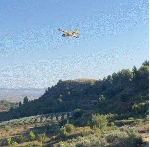 Mjeti fluturues, i specializuar për ndërhyrje në raste zjarresh në terrene të vështira, po vepron në koordinim me forcat vendase të emergjencës civile dhe strukturat e mbrojtjes nga zjarri.
