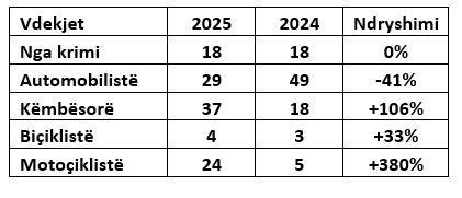 Por sidoqoftë, ne kemi një problem të madh me vdekjet aksidentale të këmbësorëve/biçiklistëve/motoçiklistëve – plot 65 prej tyre humbën jetën gjatë 6-mujorit të parë të këtij viti, krahasuar me vetëm 26 në të njëjtën periudhë të një viti më parë. Dhe kjo ka ndodhur kur numri i aksidenteve rrugore është ulur me 8% (nga 764 ka zbritur në 702).