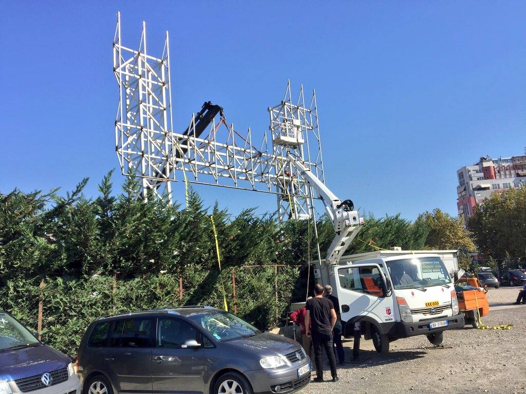 Bashkia e Tiranës ka prishur kete strukture metalike pa leje, e cila u ngrit natën në afërsi të rreth-rrotullimit “Shqiponja” në Laprakë, nga një grup që njiheshin në komunitet si “ushtarët e Shullazit”, të cilët kërcënonin inspektoret e Bashkisë që e pikasën si ndërtim pa leje.