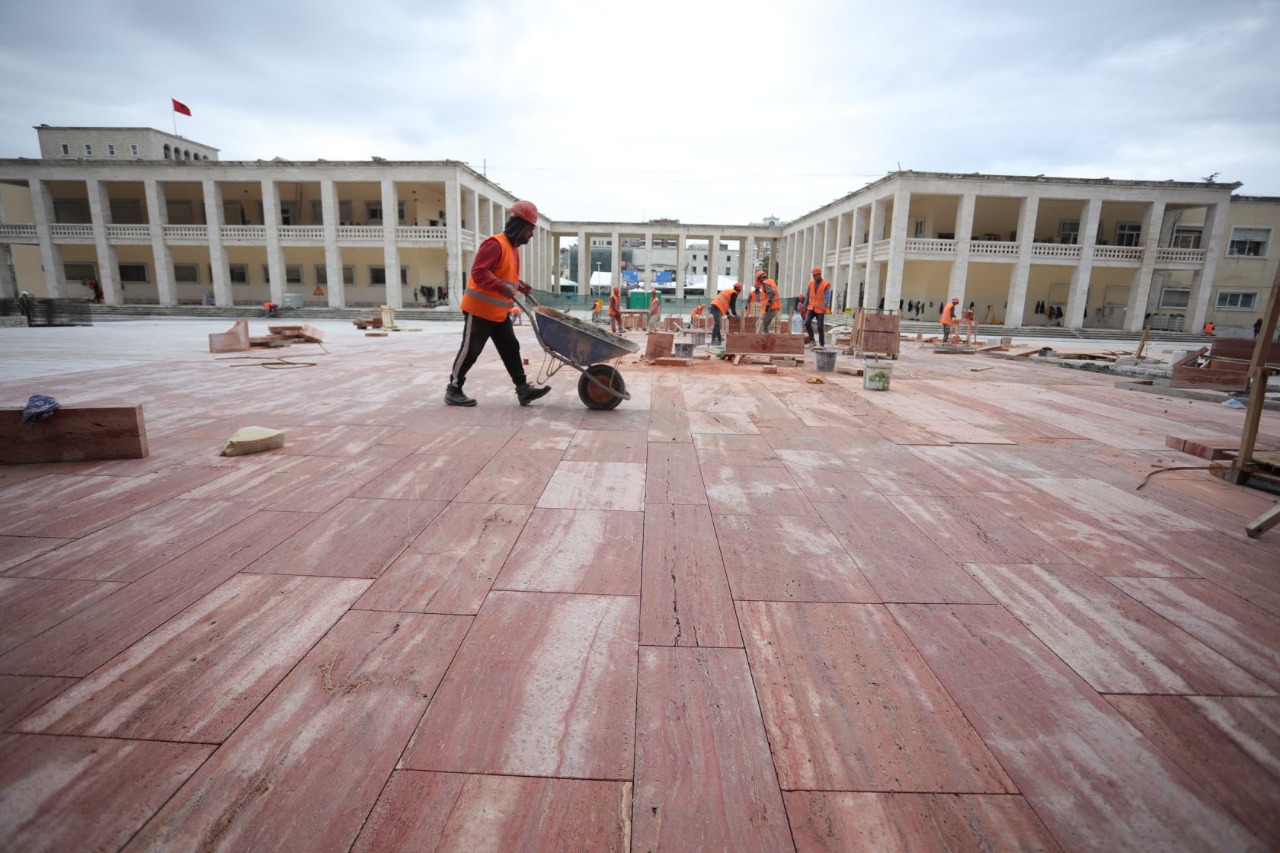 Pas shtrimit të pllakave dhe sistemit të gjithë sheshit “Italia”, grupi i punës është fokusuar në realizimin në kohë të gjithë detajeve.