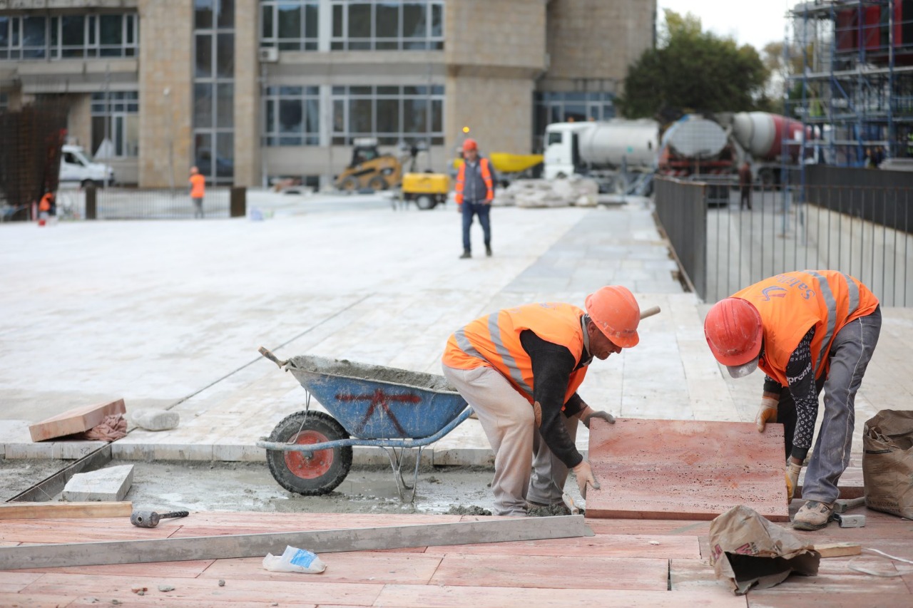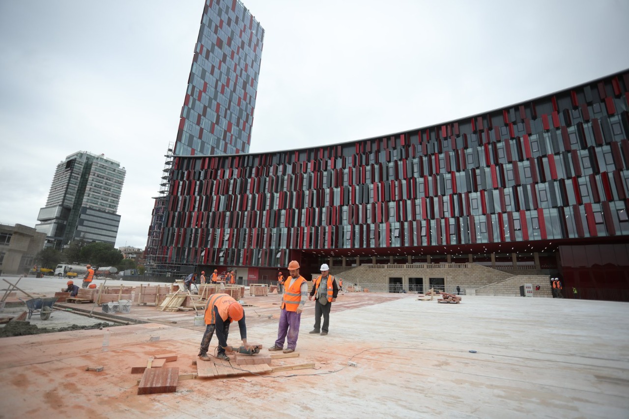 Pas shtrimit të pllakave dhe sistemit të gjithë sheshit “Italia”, grupi i punës është fokusuar në realizimin në kohë të gjithë detajeve.