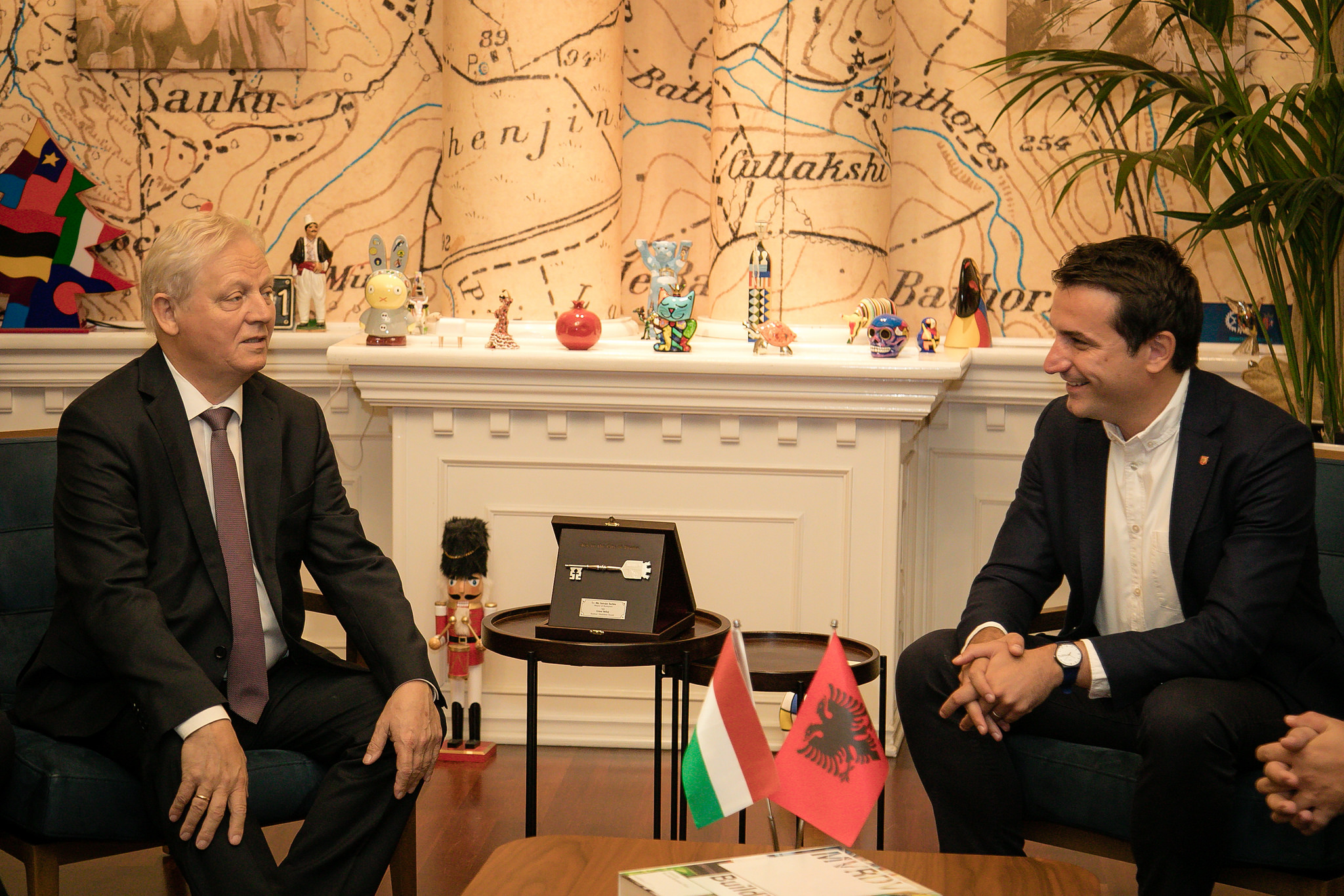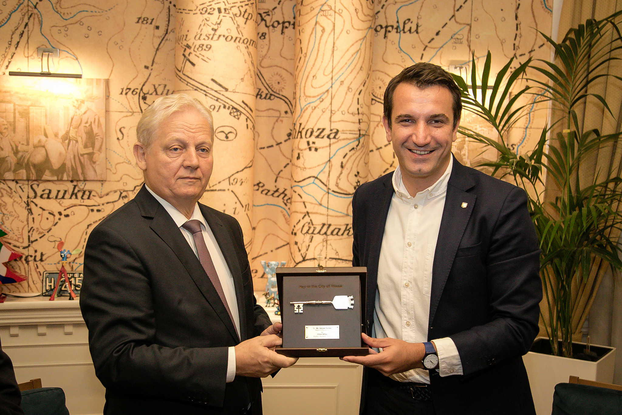 Kreu i Bashkisë së Tiranës, Erion Veliaj priti në një takim kryetarin e Bashkisë së Budapestit, István Tarlós, të cilit në shenjë miqësie dhe bashkëpunimi mes dy qyteteve, i dhuroi edhe “Çelësin e Qytetit”.