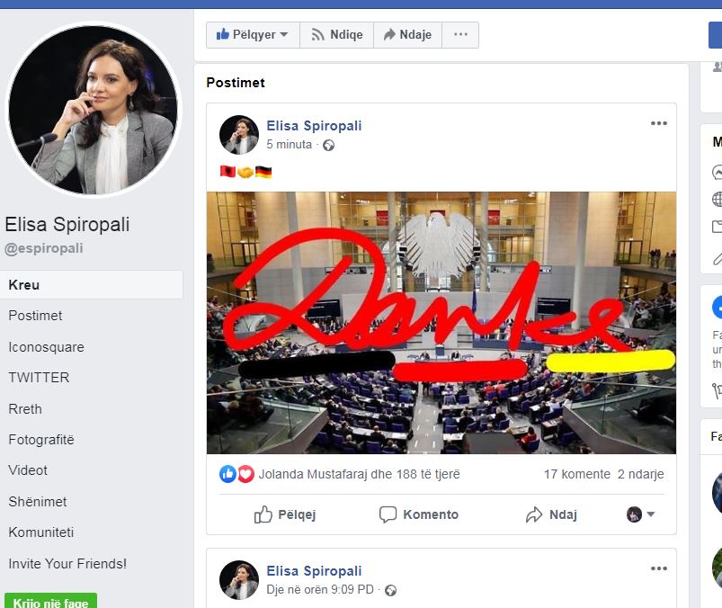 Po ashtu, Spirpoali ka publikuar edhe fotografitë e dy shteteve, atij shqiptar dhe gjerman dhe shenjën e duarve, si simbol i bashkëpunimit dy palësh.