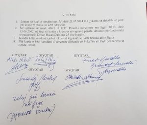 Gjyqtari Fuat Vjerdha ka publikuar në profilin e tij në facebook faqen e fundit të këtij vendimi ku mbajnë firmat dhe të 5 gjyqtarët që kanë firmosur këtë vendim.