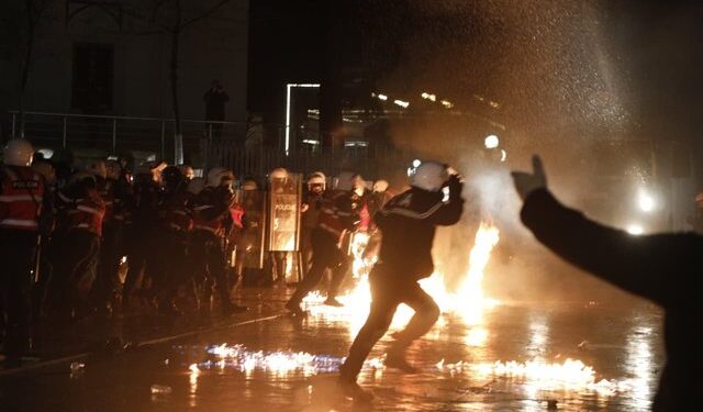 “Gjatë tubimit dje, janë përdorur bomba molotov, lëndë piroteknike dhe sende të forta të drejtim të policisë, si pasojë e sulmit, janë plagosur 16 punonjës policie. Unë them sulm ndaj punonjësve të policisë se bomba molotov janë hedhur drejtpërsëdrejti mbi trupin e punonjësve të policisë. Them diçka që protestuesit kanë hedhur mbi punonjësit e policisë, kryesisht te Parlamenti. Për të përcaktuar nëse janë akte të organizuara, është ngritur një grup hetimor nga policia Tiranë dhe Prokuroria Tiranë, e cila do të hetojë se çfarë ka ndodhur gjatë tubimit të djeshëm“, u shpreh zëdhënësi.