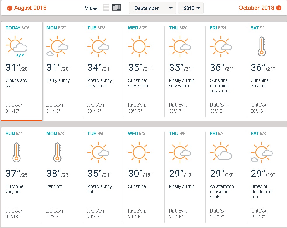 Por çfarë thotë Accuweather për parashikimin e motit deri javën e parë të shtatorit? Sipas tabelës që edhe ju keni mundësinë ta shihni më poshtë, temperaturat pritet të jenë përvëluese, nga e marta e 28 Gushtit deri në 4 Shtator./a.ç