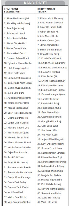 Nga 38 kandidaturat për Komisionin e Vlerësimit, do të përzgjidhen vetëm 15. Pesë anëtarë të këtij Komisioni caktohen nga ILDKPKI-ja, të përzgjedhur midis punonjësve të këtij institucioni. Ky organ cakton gjithashtu edhe dy anëtarë zëvendësues, që ushtrojnë detyrën në rast mungesash të zgjatura të anëtarëve të caktuar. Pesë anëtarë të tjerë përzgjidhen nga një bord i caktuar posaçërisht për këtë qëllim, nga pedagogë të Fakultetit të Drejtësisë dhe të Fakultetit të Ekonomisë të Universitetit të Tiranës.