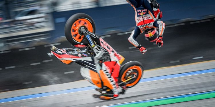 Një fitore në këtë Çmim të Madh të Tajlandës, mund t’i sigurojë Mark Markezit titullin kampion bote në Moto GP, por ajo nuk ka nisur aspak në mënyrën më të mirë të mundshme.