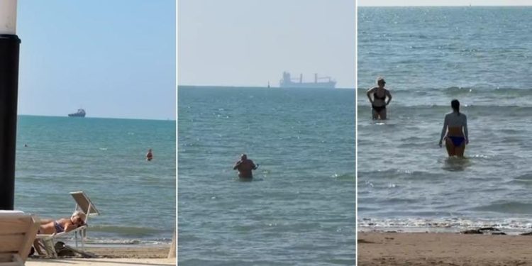 Siç shihet në video, disa turistë huaj kanë marrë rreze dielli, teksa po ashtu edhe janë larë në ujërat e detit Adriatik.