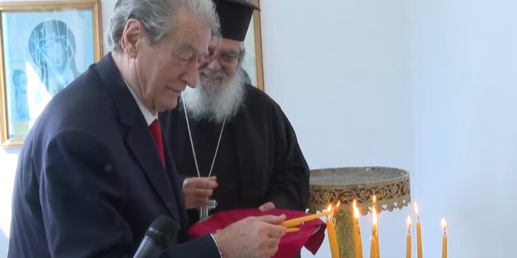 Berisha u prit dhe u shoqërua nga drejtuesi i kësaj kishe, me ndihmën e të cilit lideri demokrat Sali Berisha ndezi disa qirinj.