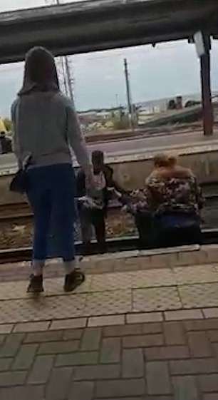 Kur ai përpiqet të kthehet përsëri në platformë, 35-vjeçarja e shtyn atë prapa, por Leroy arrin ta tërheqë edhe atë tek binarët, dhe aty fillon një zënkë me të goditura.