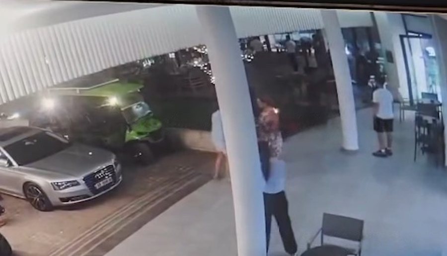 Nga pamjet e siguruara, duket gartë momenti i konfliktit dhe njerëzit që largohen me vrap nga njësia hoteliere, në kushtet e panikut.