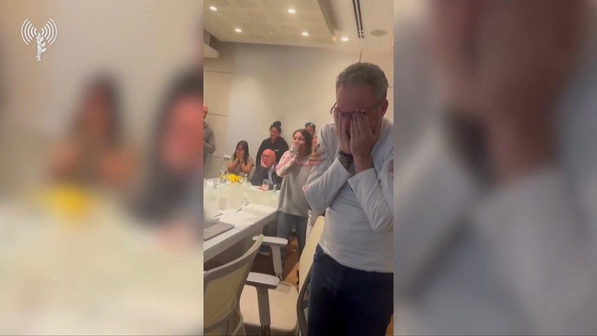 Në video, shihet se si babai i 24-vjeçares Eitan Gonen hidhet përpjetë nga gëzimi. Para se të shpërthejë në lot.