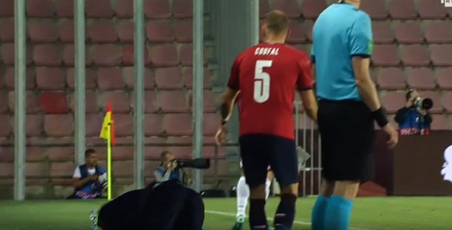 Sonte një prej lojtarëve të Çekisë e shtyu lehtë Rejën, i cili përfundoi i shtrirë dhe pati tension në fushë nga stafi i Shqipërisë dhe lojtarët. abcnews.al