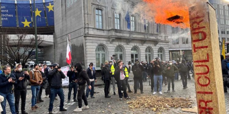 Pak para mesnatës së mërkurës, kjo ngjarje kishte paraprirë shfaqjen e më shumë se 100 traktorëve që bllokuan rrugën Rue de la Loi, përpara ndërtesave të Komisionit Evropian dhe Këshillit Evropian, duke i habitur Autoritetet.