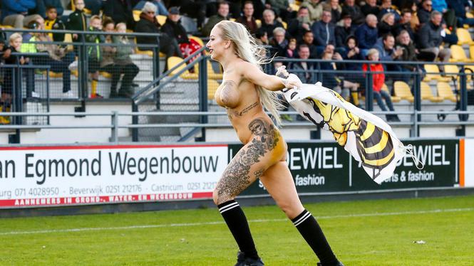E zhveshur tërësisht dhe me një flamur në krah, gruaja vrapoi nëpër fushë, ngacmoi lojtarët dhe pastaj u arratis në një nga qoshet e fushës, duke humbur gjurmët.