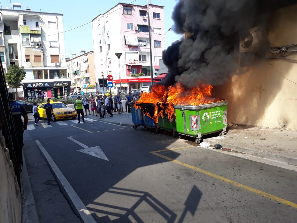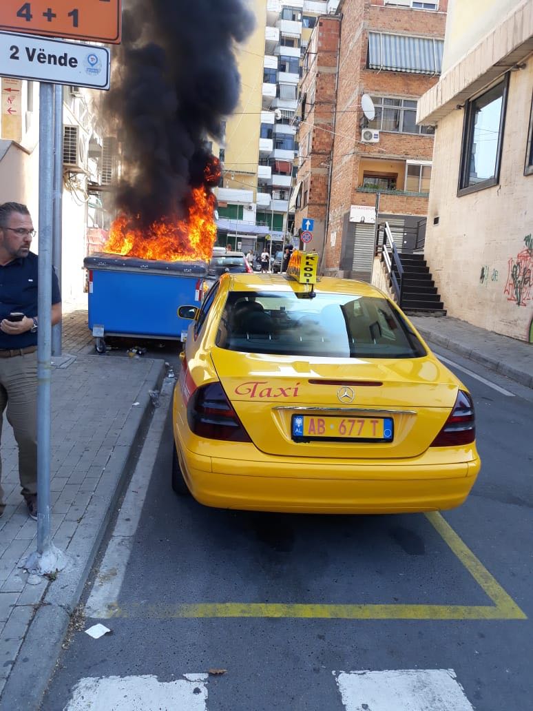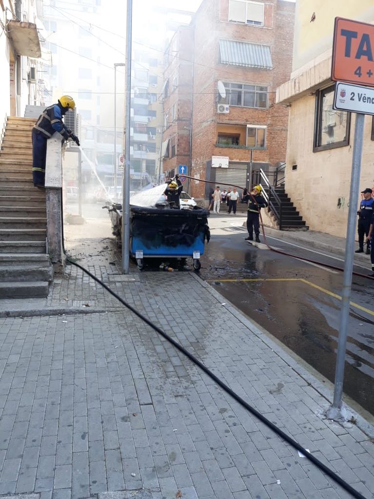 Vetëm pak minuta më parë është konstatuar një zjarrëvënie masive kazanësh plehrash, e cila duket se është e qëllimshme. Një zjarr ka shpërthyer pas Bashkisë së Tiranës, pre e së cilës kanë rënë disa kazane plehrash. Nga të dhënat e para duket se ky është një akt i qëllimshëm.