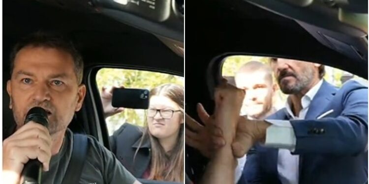 Kalinak shkoi te makina dhe trokiti në xhamin e shoferit. Më pas Matoviq hapi derën dhe Kalinak u përkul dhe u përpoq t’i rrëmbejë mikrofonin, ndërsa Matoviq u përpoq ta largonte dhe e shau duke e quajtur mafioz.