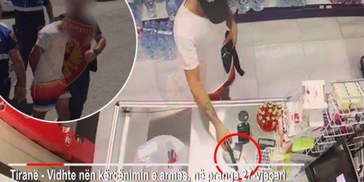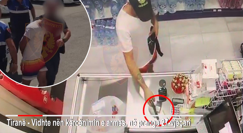 Kamerat e sigurisë kanë filmuar momentet kur i riu, i identifikuar me inicialet E.B, me kapele në kokë, nxirrte armën nga një çantë e vogël dhe kërcënonte shitësit për të marrë paratë e xhiros.